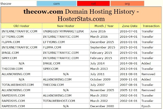HosterStats – Suppose you type in the same domain TheCow.com in search which will eventually take you to this link where you can see: